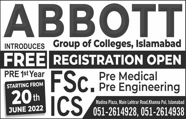 Abbott Group Of Colleges FSc & ICS Admissions 2022