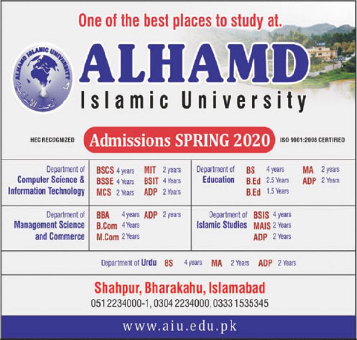 ALHAMD Islamic University BSCS BSSE Admission 2020