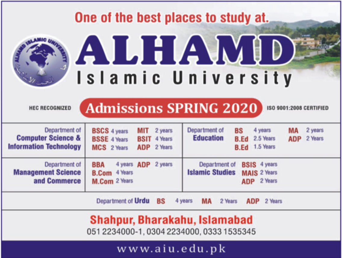 ALHAMD Islamic University BSCS BSSE Admission 2020