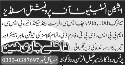 Asian Institute of Medical Studies is seeking applications for admissions 2021 in 9th Class, 10th Class, FSc, BSc, MBBS, DPM, Pharm D in Quetta.