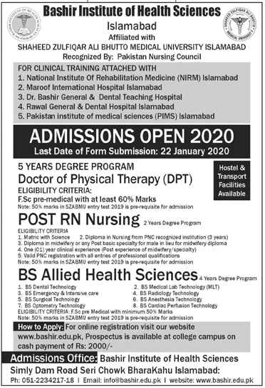 Bashir Institute of Health Science Admission 2020