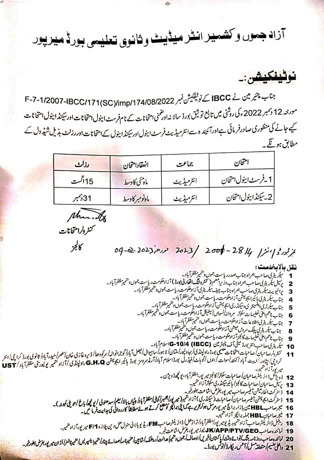 BISE AJK Inter 1st & 2nd Annual Exam Shedule 2023