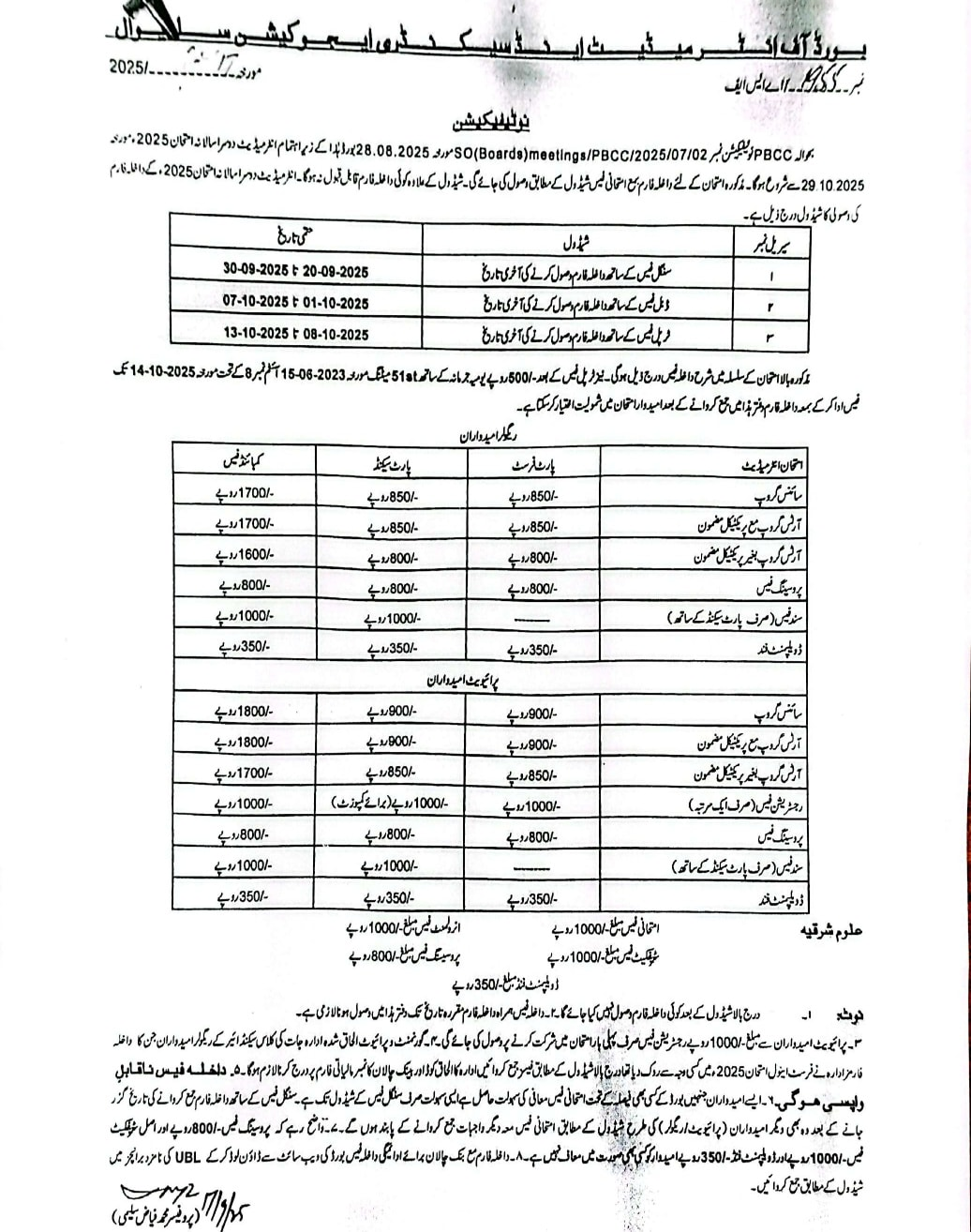 The students will send their application forms with the payment of single fee from 20-09-2025 to 30-09-2025. The candidates can send their admission forms with the deposit of the double fee from 01-10-2025 to 07-10-2025. The candidates will also send their admission forms and pay the triple fee from 08-10-2025 to 13-10-2025. The students will also note the rate of the fee and they will pay the fee accordingly.