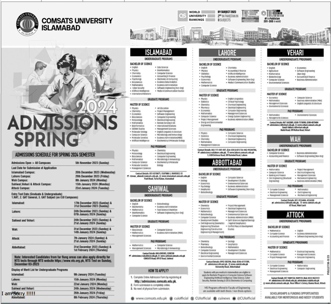 For those aspiring to join the ranks of a prestigious institution like COMSATS University, admissions for the Spring 2024 semester are now open across all our campuses.