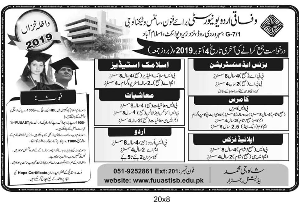 Federal Urdu University Islamabad Fee 2019