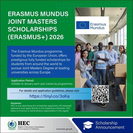 Higher Education Commission of Pakistan is going to offer the scholarships to the students to get the education in the leading universities in Europe. The European uni on funds these scholarships to the students all over the world to get the opportunity of getting opportunity of pursuing joint masters programs in the leading and most prestigious European universities. The students can get the latest updates of HEC Erasmus Mundus Joint Masters Scholarships 2026.