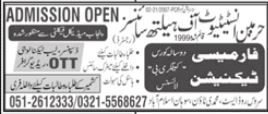 Hermeen Institute of Health Sciences has announced the admissions 2021 for Diploma in Pharmacy Technician, Dispenser, Lab Technology, OOT and Radiographer in Islamabad.