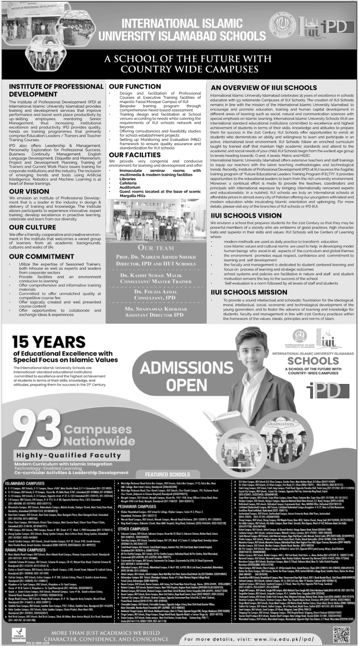 Celebrating 15 years of excellence, IIUI Schools offer international-standard education to students from early learning through A Levels, Matric, and HSSC. With 93 campuses nationwide, the schools are rooted in Islamic
