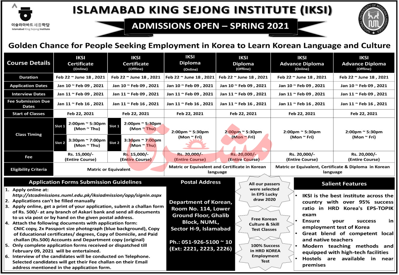 Islamabad King Sejong Institute (IKSI) Admission 2021