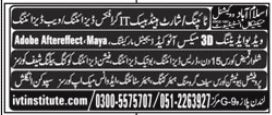 Islamabad Vocational Technical Institute has offering the new admission 2021 for Courses in Tailoring, Beautician, Fashion Design, Basic IT, Graphics, Website, AUTOCAD, Spoken English in Islamabad.