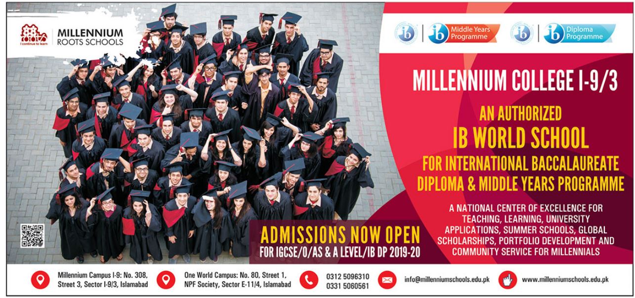 Millennium College I-9/3 Islamabad has announced admission for IGCSE/O/AS & A Level/IB DP. IB World School for International Baccalaureate Diploma & Middle year programme.