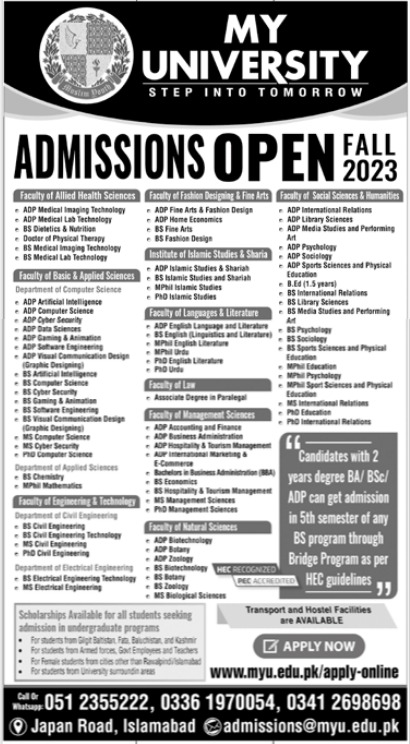 Dont miss this opportunity to join My University and shape your future. Admissions for 2023 are now open! Apply today at MY University and embark on a path to success and fulfillment. Your academic journey starts here!