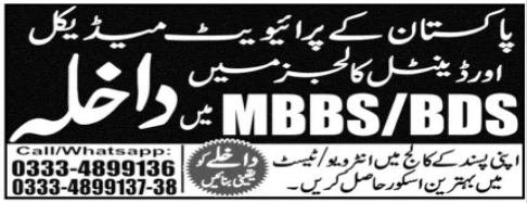 Pakistan Private Medical & Dental Colleges Mbbs / Bds Add