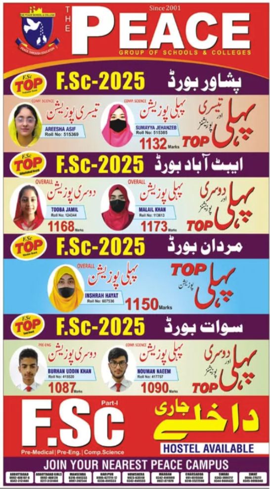 The Peace Group of School and College Admissions 2025 FSc