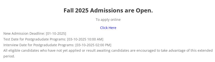- Postgraduate Program Interviews: Interviews for postgraduate candidates will also be held on the same day, October 3, 2025, starting at 2:00 PM.