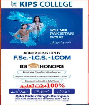 KIPS College, renowned nationwide for its commitment to excellence, is now accepting applications for admissions at its Qila Didar Singh Campus for the academic year 2025. Whether you are looking to enroll in F.Sc., I.C.S., I.Com, or BS Honors programs, KIPS College provides a transformative educational experience designed to empower students and help them achieve their goals.