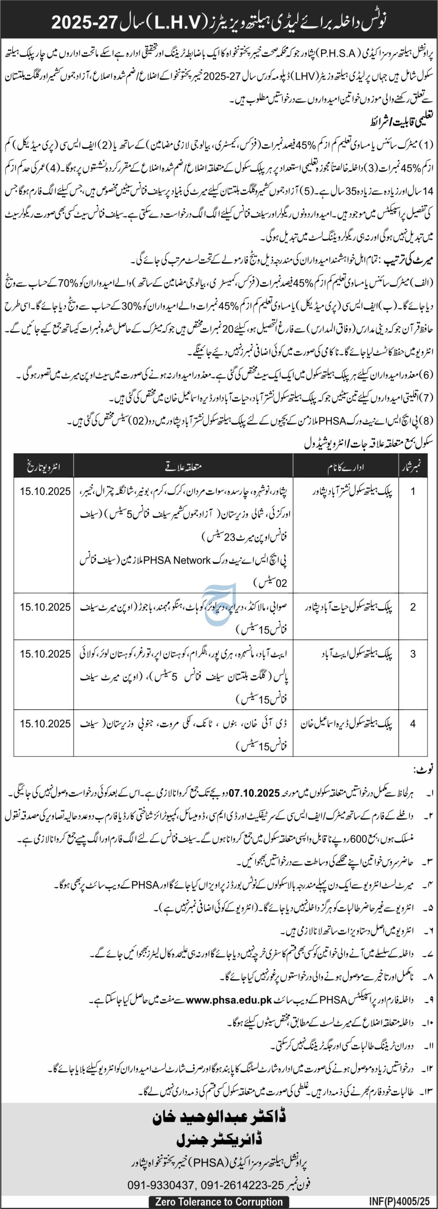 4 | Public Health School, D.I. Khan | Dera Ismail Khan, Bannu, Tank, Lakki Marwat, South Waziristan | October 15, 2025 |