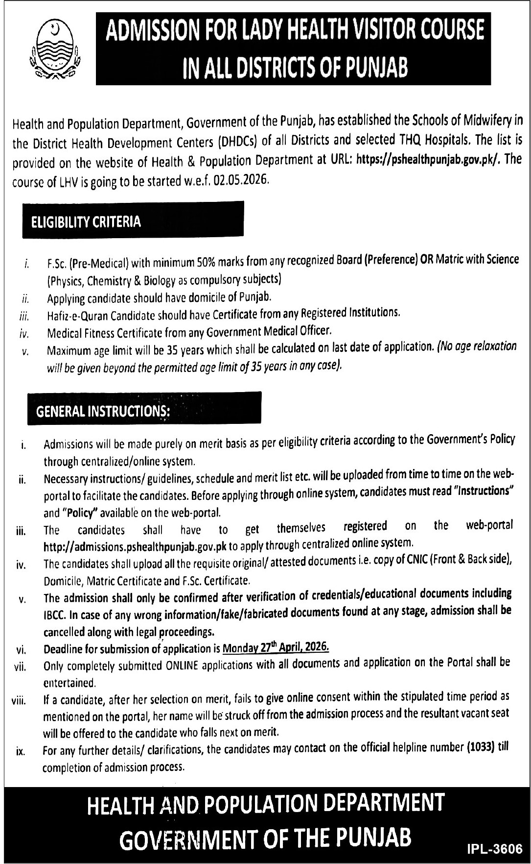 This is a valuable opportunity for female candidates in Punjab to pursue a professional career in the healthcare sector. Interested applicants are advised to complete their online applications before the deadline to secure admission in the LHV program.