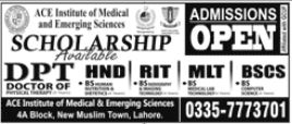 Admissions Open for Diverse Programs: ACE Institute of Medical and Emerging Sciences is currently accepting admissions for a range of programs, including Doctor of Physical Therapy DPT, Higher National Diploma HND, Radiology Imaging Technology RIT, Medical Laboratory Technology MLT, and Bachelor of Science in Computer