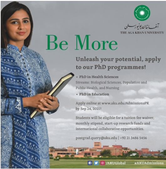 Agha Khan University is looking for Applications for Admissions of PhD Programs in Education and in Health Sciences, Stream: Biological Sciences, Population and Public Health and Nursing. Interested candidates who want to get Admissions in Agha Khan University are required to submit their online Applications before deadline, deadline is September 24, 2021. Admissions are open for Session 2021.