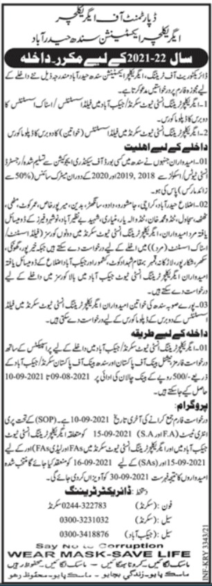 Agriculture Extension Sindh Hyderabad Course Admissions 2021