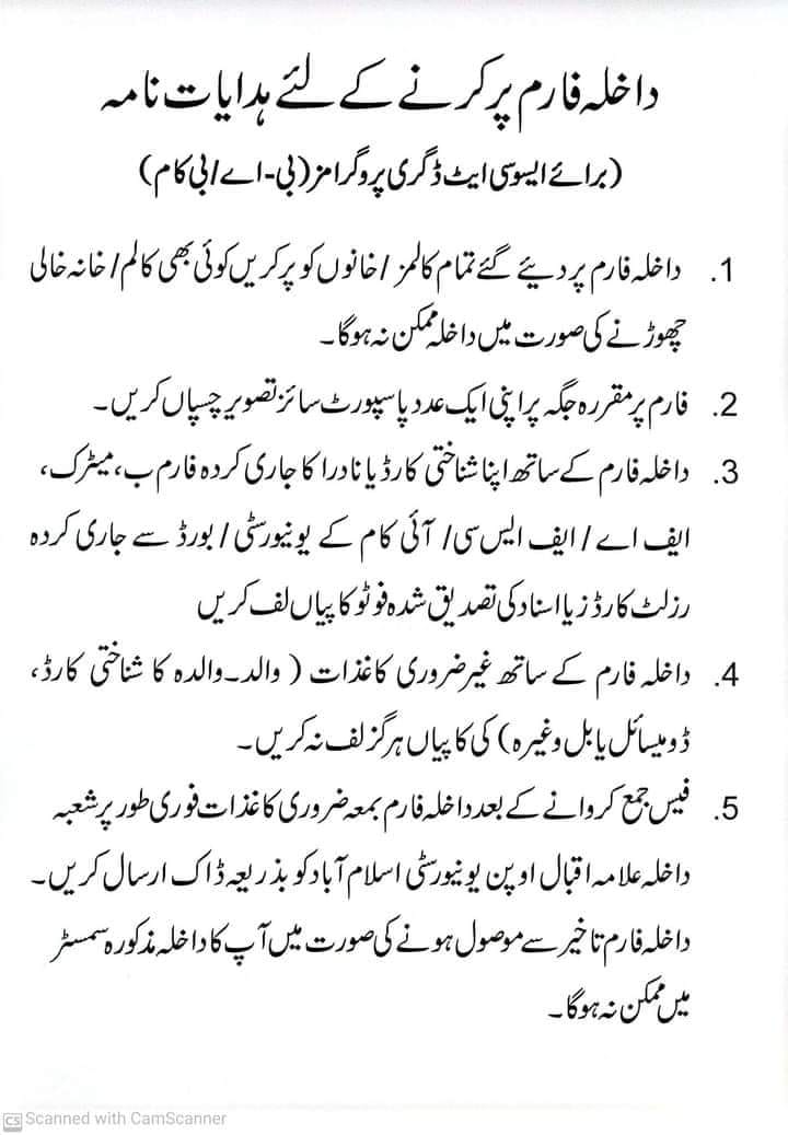 AIOU ADA & ADC Admission Forms 2023 Instructions