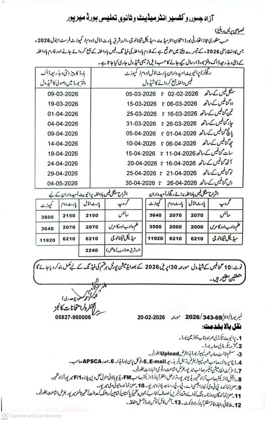 AJK Board Inter Annual Exams 2026 Form & Fee Schedule