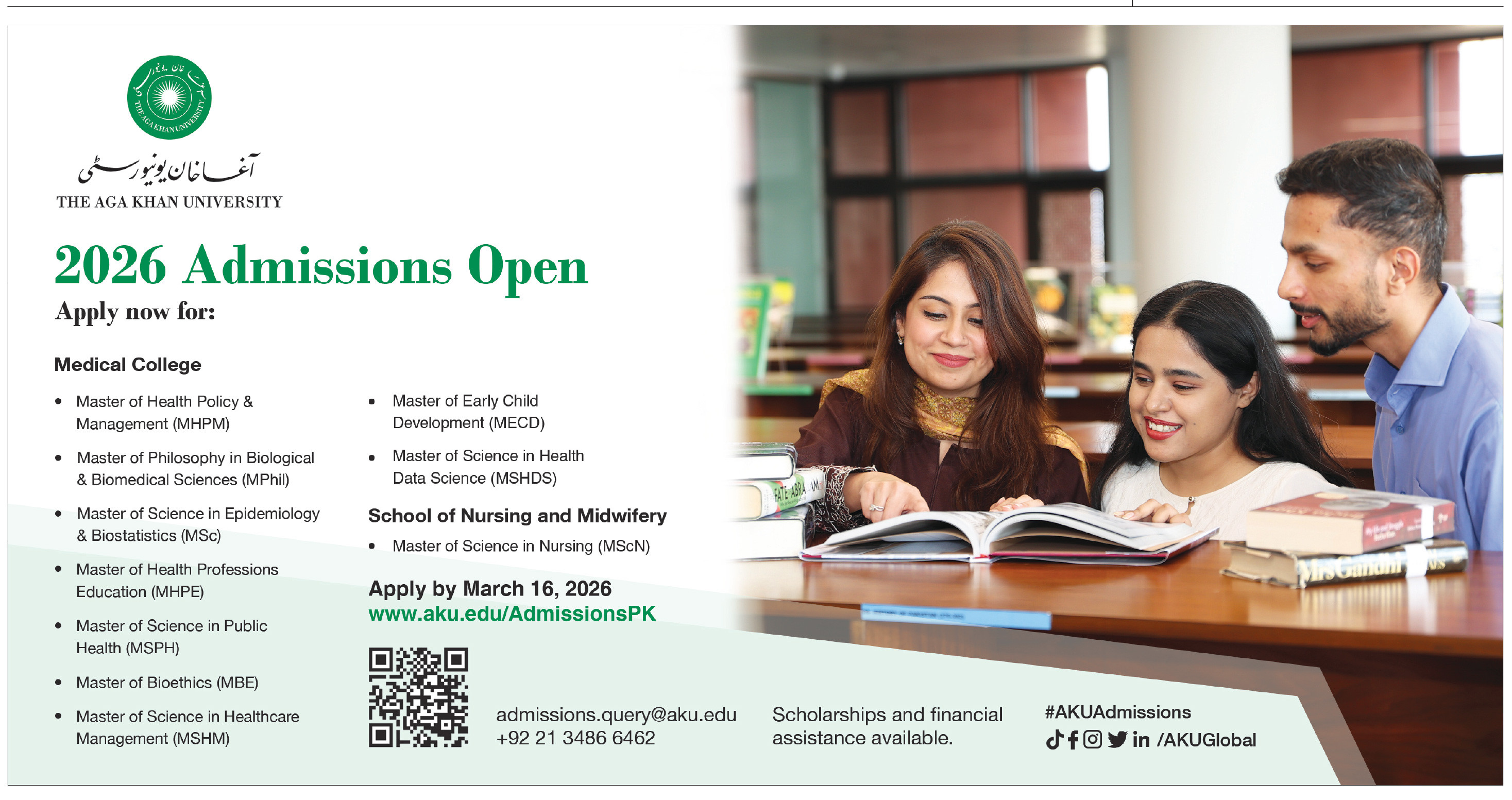 The Aga Khan University AKU invites applications for its 2026 academic session across multiple programs in health, medicine, and allied sciences. This is a unique opportunity for aspiring professionals to join a globally recognized institution committed to excellence in education, research, and healthcare.