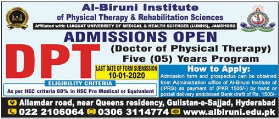 AL Biruni Institute DPT Admission 2020
