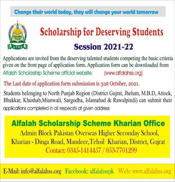 Al-Falah Scholarship Scheme 2021-22 Deserving Students