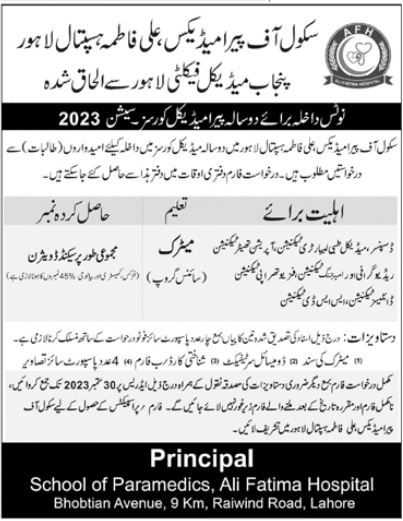 Ali Fatima Hospital AFH Lahore Admission 2023