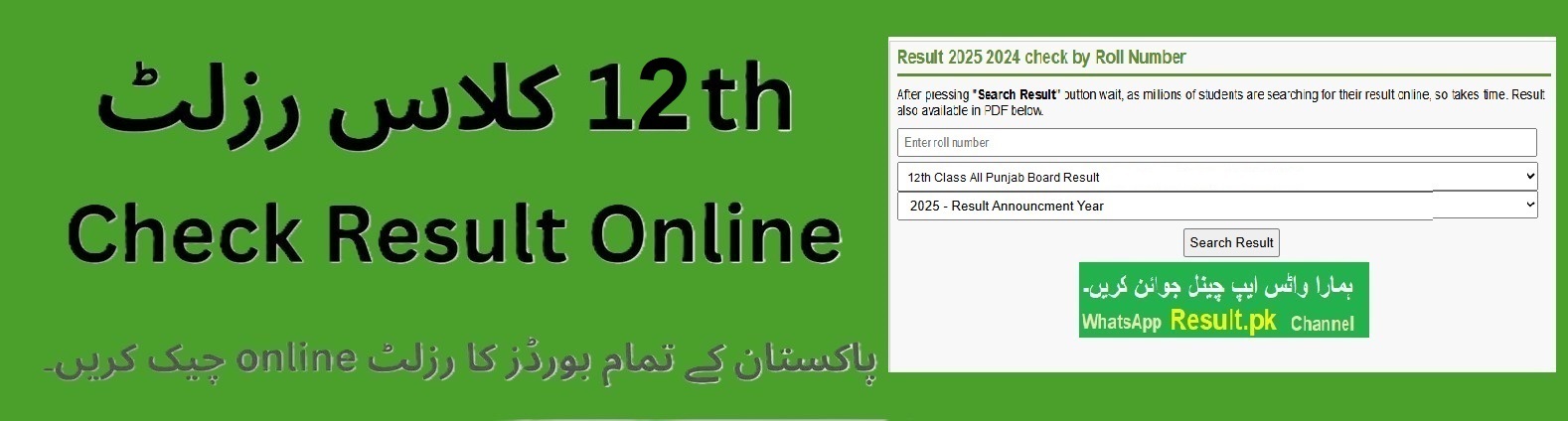 Stay connected with us on Result.pk WhatsApp Channel for instant updates, official result links, SMS codes, and detailed mark sheets related to the Punjab Boards 12th Class Result 2025.