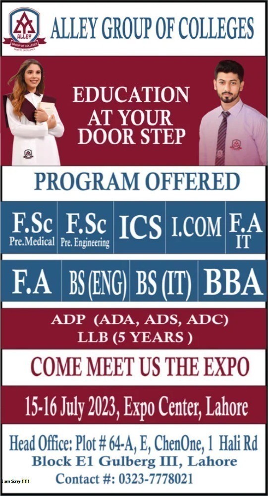 Alley Group of College, a leading institution known for its excellence in education, has exciting news for prospective students seeking admission 2023. With a diverse range of academic opportunities, the college offers admission classes in PSc Pre Engineering, FSc Pre Medical, ICS, I.Com, FA IT, FA, BS English, BS IT, BBA, LLB, and ADP. Aspiring engineers, doctors, IT enthusiasts, business moguls, and law professionals can now embark on their academic journey with Alley Group of College.