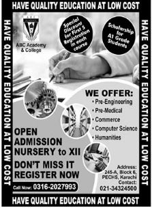 ARC Academy and College is offering admissions 2021 in Nursery to Class 12th, FSc Pre Engineering, FSc Pre Medical, I.Com. ICS, FA, General Science in Karachi.