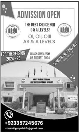 Army Public School And Colleges System APSACS O level A Level Admission 2024