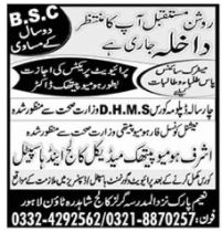Ashraf Homeopathic Medical College Lahore has announced admissions for BSc, 4 years Diploma Course in DHMS. Matric with Science students can apply for admission. Admissions are open.