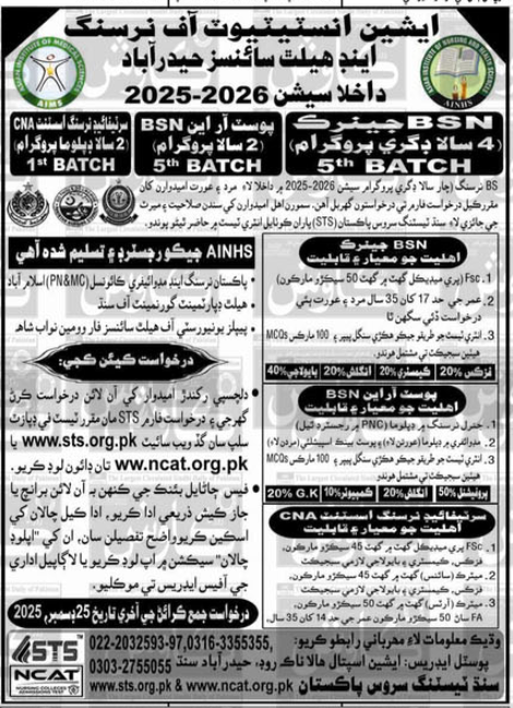 Applicants must meet the following standards, as recognized by AINHS and Pakistan Nursing & Midwifery Council PNMC, Islamabad: