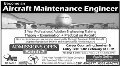 Aviation Training Hub Admission 2020 announced for the course in the Aircraft Maintenance Engineer. The Admission open for the 2nd Batch. Entry Test will be held on 13th February, 2020 at 1 PM.