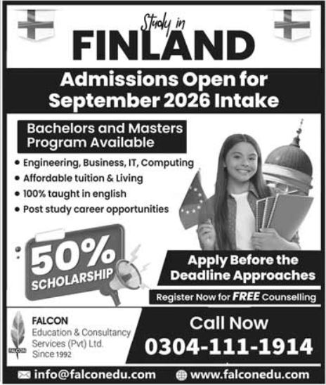 Students who want to obtain an internationally recognized degree and build a successful global career should take advantage of this opportunity and apply for the September 2026 intake to study in Finland with the professional guidance of Falcon Education & Consultancy Services Pvt Ltd.. Early registration will help ensure a smooth application process and increase the chances of securing admission and scholarships.