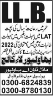Bahawalpur Law College is started the process of accepting applications for Bahawalpur Law College Admissions 2022. Bahawalpur Law College LLB Admissions 2022 are open for Academic Session 2021-2022. Candidates are being invited on prescribed admission forms for Bahawalpur Law College LLB Admissions 2022. Candidates shall send their applications according to the Bahawalpur Law College Admissions 2022 eligibility criteria. Admissions are processing.