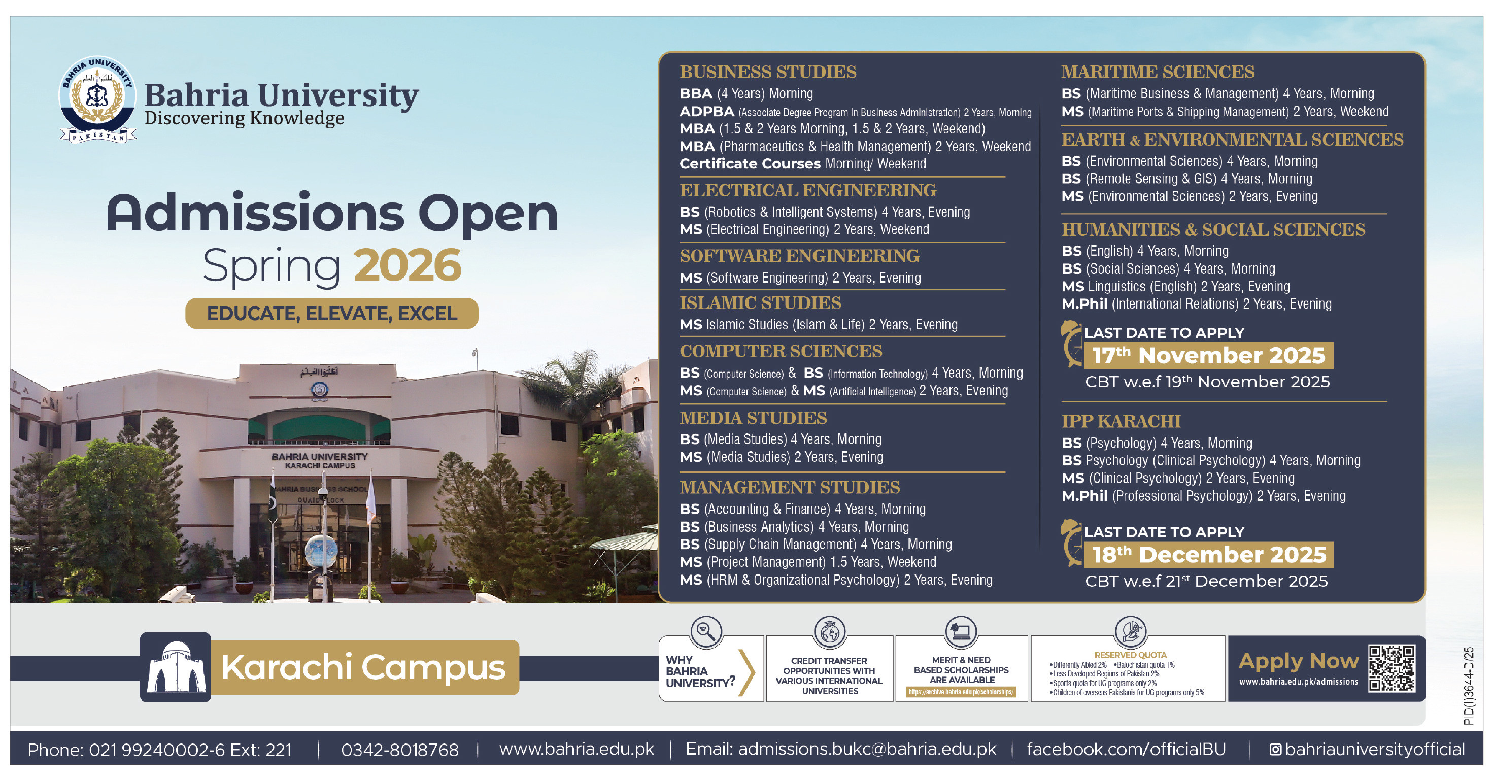 Take the first step towards a brighter future with Bahria University – where knowledge meets excellence!