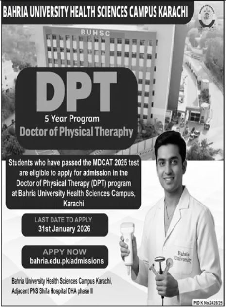 Bahria University Health Sciences Campus Karachi has officially opened its admissions 2026 cycle for the highly sought-after Doctor of Physical Therapy DPT program. This announcement marks a significant opportunity for aspiring healthcare professionals to join a premier institution dedicated to medical excellence and rehabilitation sciences.