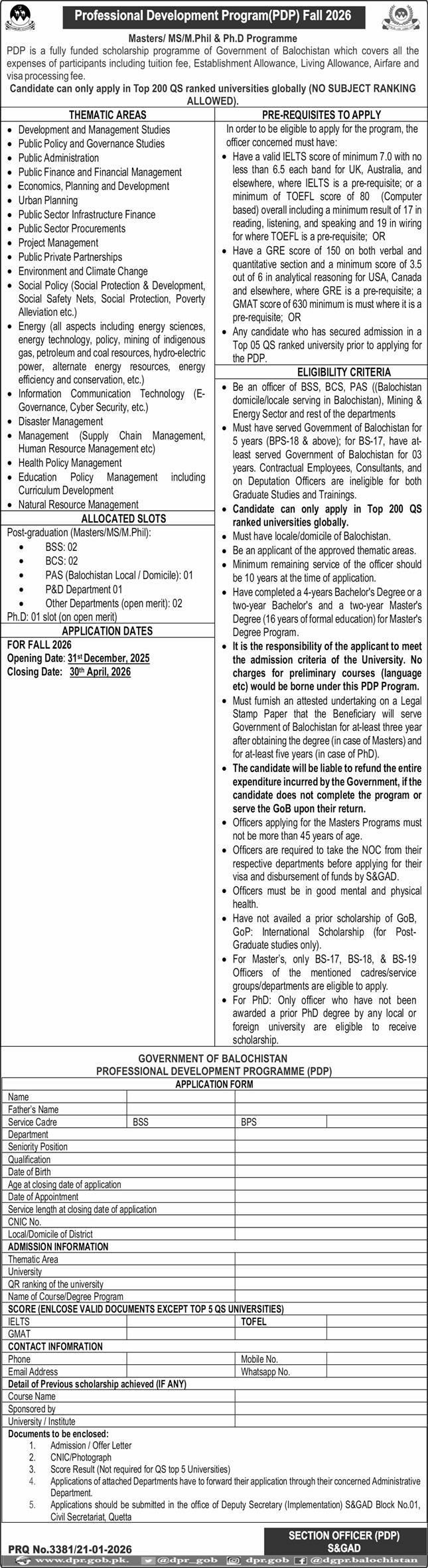 - Submit the Form: You must Apply Online through the official portal sagad.gob.pk and submit a sealed hard copy to the office in Quetta before the January 30, 2026 deadline.