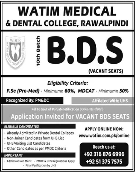 Navigating the admissions 2026 cycle requires careful attention to deadlines. The university administration has streamlined the process to ensure transparency. Furthermore, to support talented students from diverse backgrounds, Watim Medical and Dental College offers various financial aid packages.