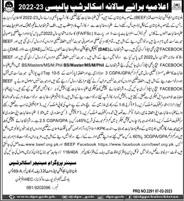 The BEEF scholarships provide a valuable opportunity for students in Balochistan to pursue their educational aspirations. With a wide range of eligible academic levels and the inclusion of various scholarship categories, BEEF aims to support deserving students across the province. Applicants are advised to adhere to the eligibility criteria and submit complete applications to avail themselves of this valuable educational support.