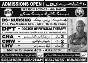 Blessing College of Nursing Sukkur proudly announces that admissions are now open for Session 2025–26.