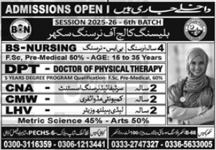 Blessing College of Nursing, Sukkur is now accepting applications for its 6th batch of admissions for the session 2025-26. The college offers a variety of professional programs in nursing and healthcare designed to train competent and skilled healthcare professionals.