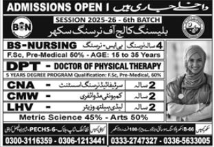 Blessing College of Nursing Sukkur Admissions 2025 Courses