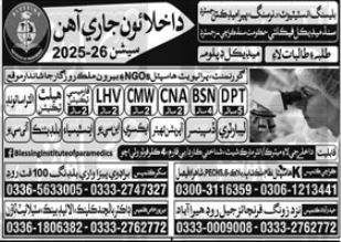 Blessing Institute of Paramedics invites applications for medical and paramedical diploma programs for the 2025–26 academic session. The institute provides quality education and training for students aiming to build a career in healthcare, both locally and internationally.