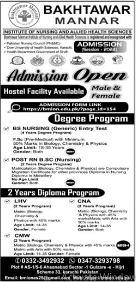 The Bakhtawar Mannar Institute of Nursing and Allied Health Sciences BMION stands as a beacon of quality education and professional development in the field of healthcare. Aspiring healthcare professionals can now seize the opportunity as BMION announces admissions for the year 2024.